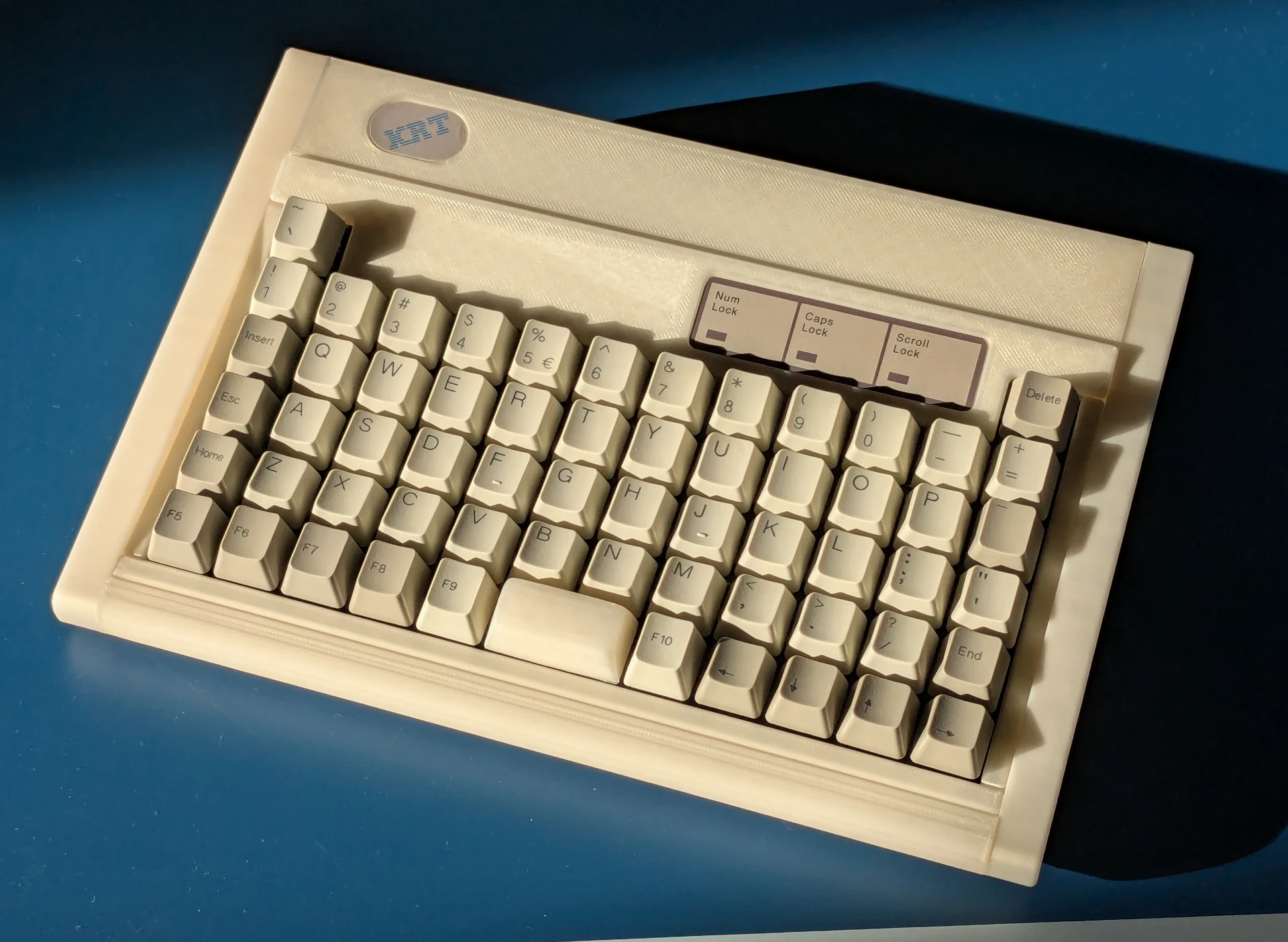 3D printed case for Krtkus in the style of the iconic IBM Model M. Designed in Blender and iterated on through 3D printing.
